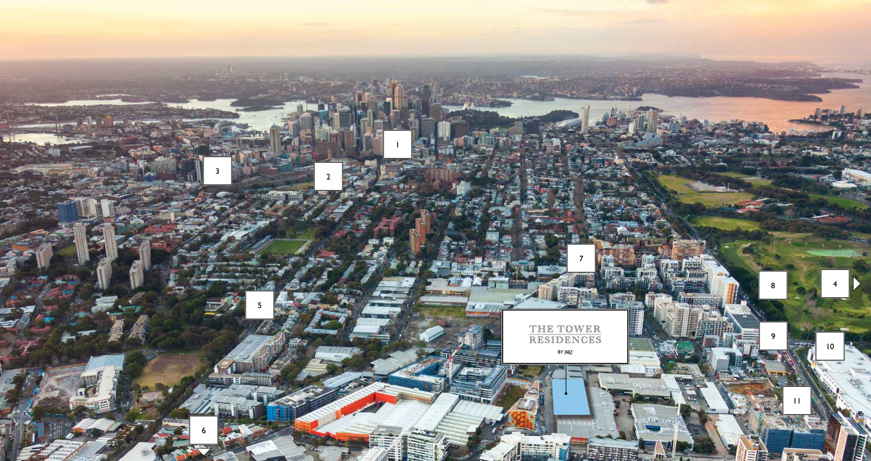 The Tower Residences occupy a prime spot in the vibrant, rejuvenated suburb of Waterloo, conveniently located on the fringes of Bourke Street and just minutes from the buzzing hub of the Danks Street precinct.